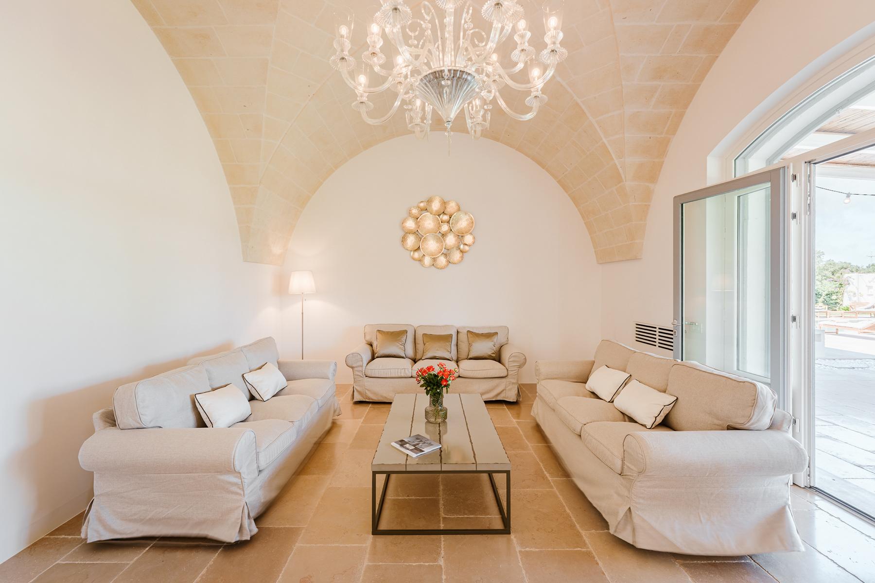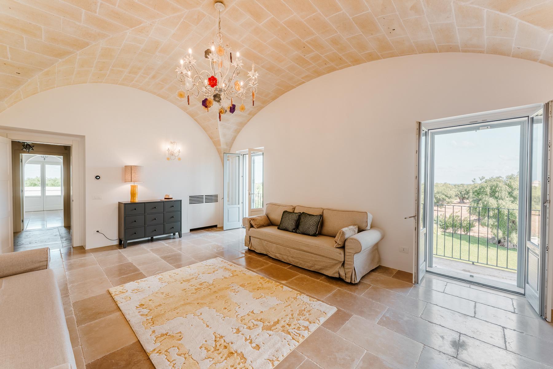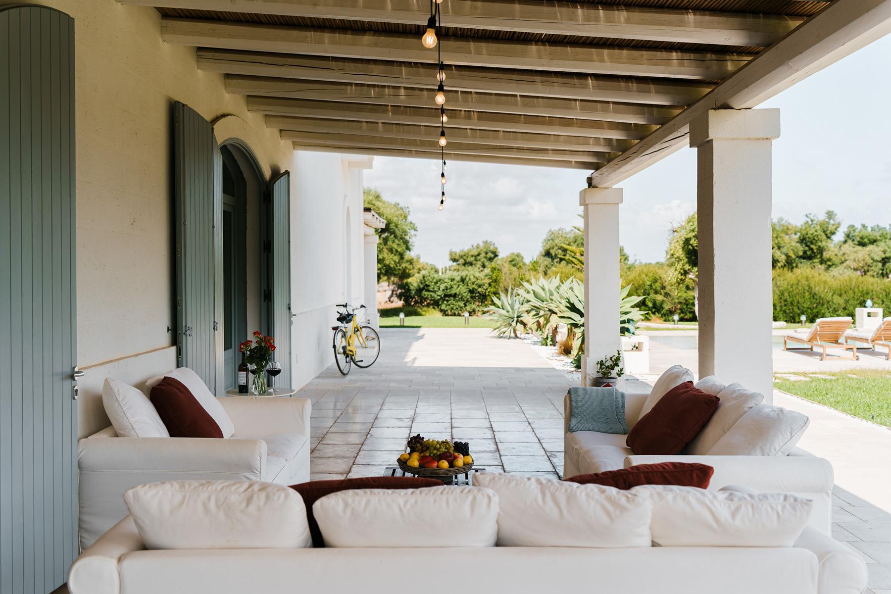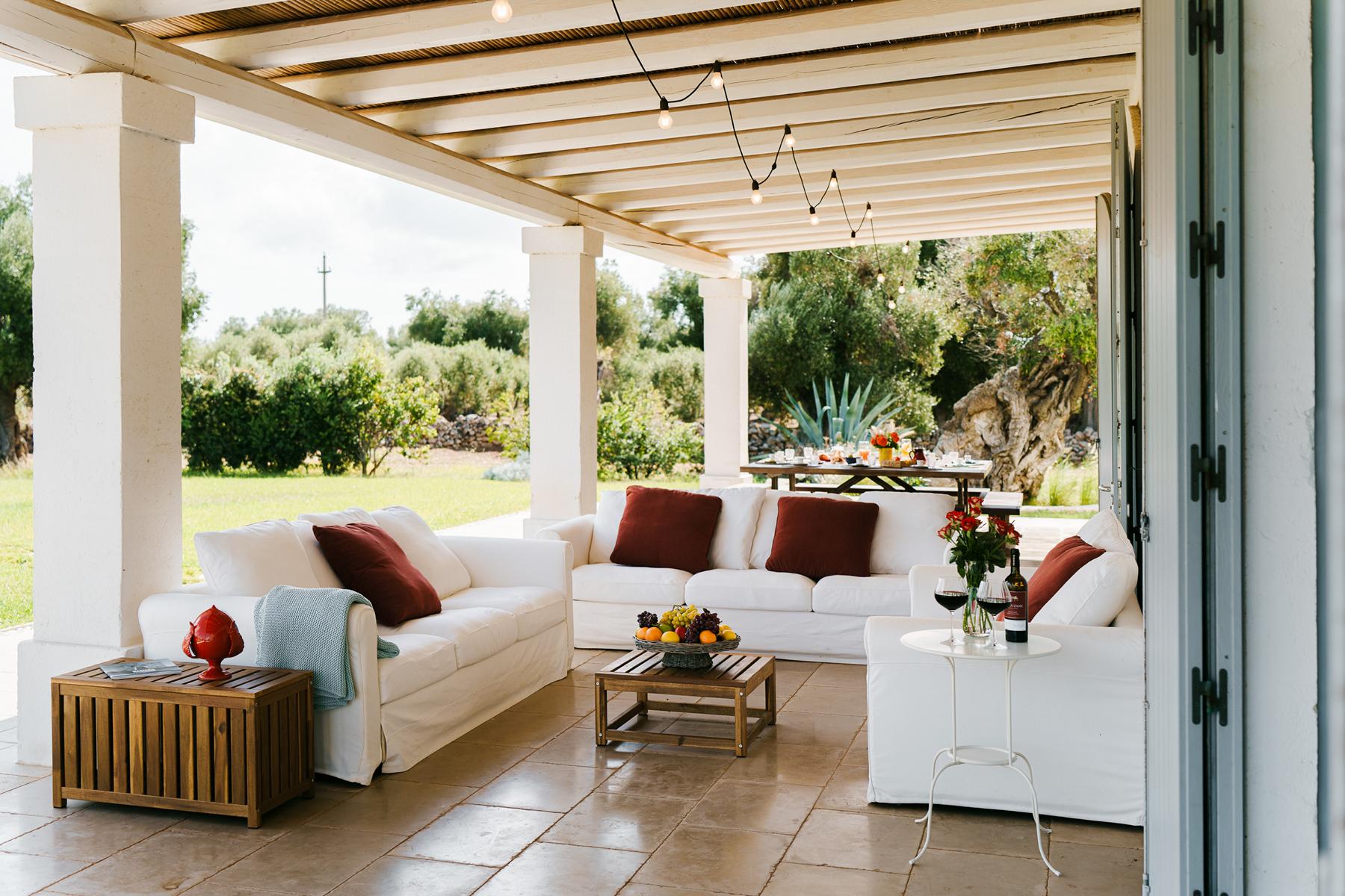 Zwischen jahrhundertealten Olivenhainen, chic, glamourös und von zeitlosem Charme. Ruhe und ein Blick auf das Meer in dieser prächtigen Villa voller Zauber in Apulien.