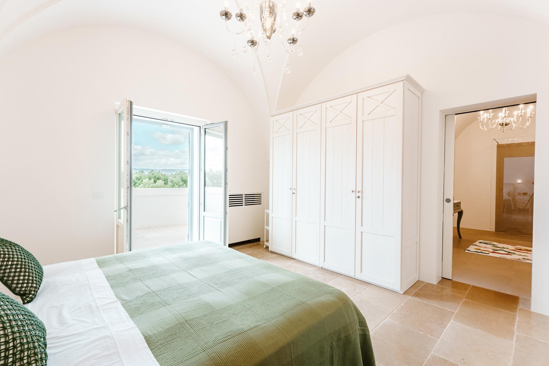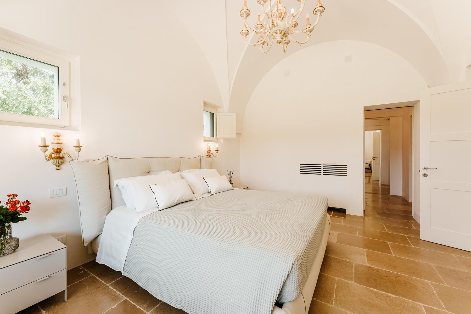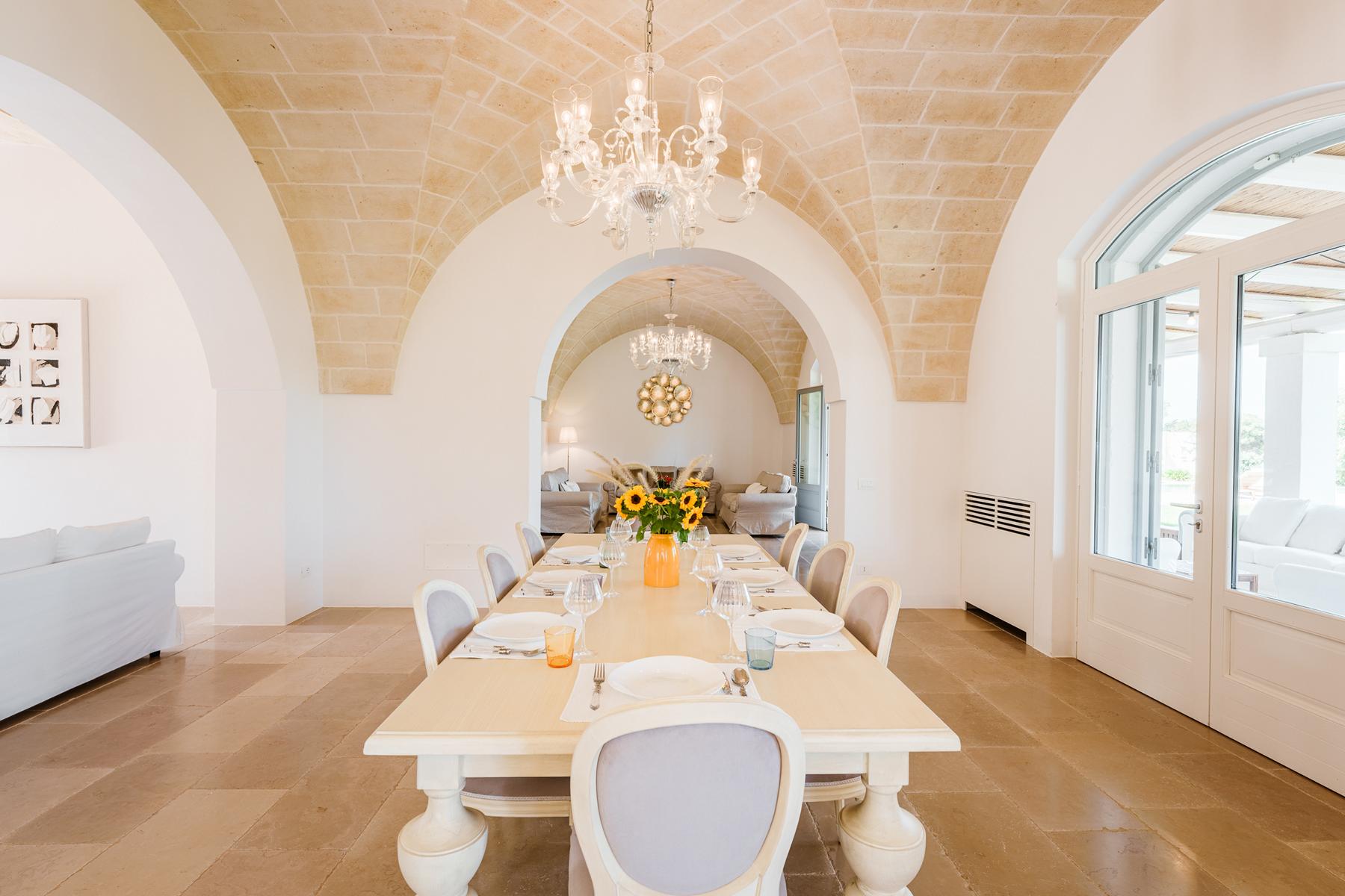 Zwischen jahrhundertealten Olivenhainen, chic, glamourös und von zeitlosem Charme. Ruhe und ein Blick auf das Meer in dieser prächtigen Villa voller Zauber in Apulien.
