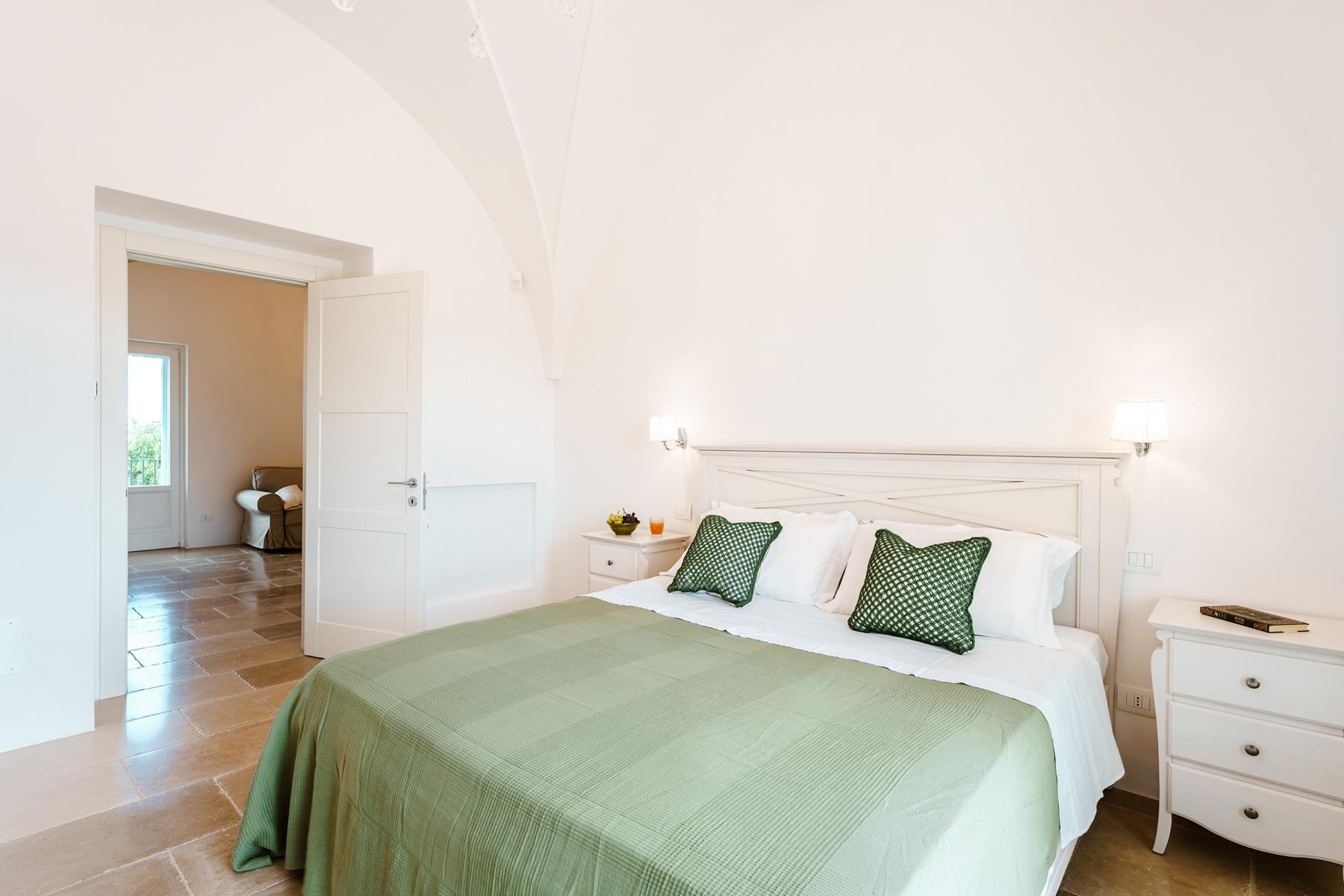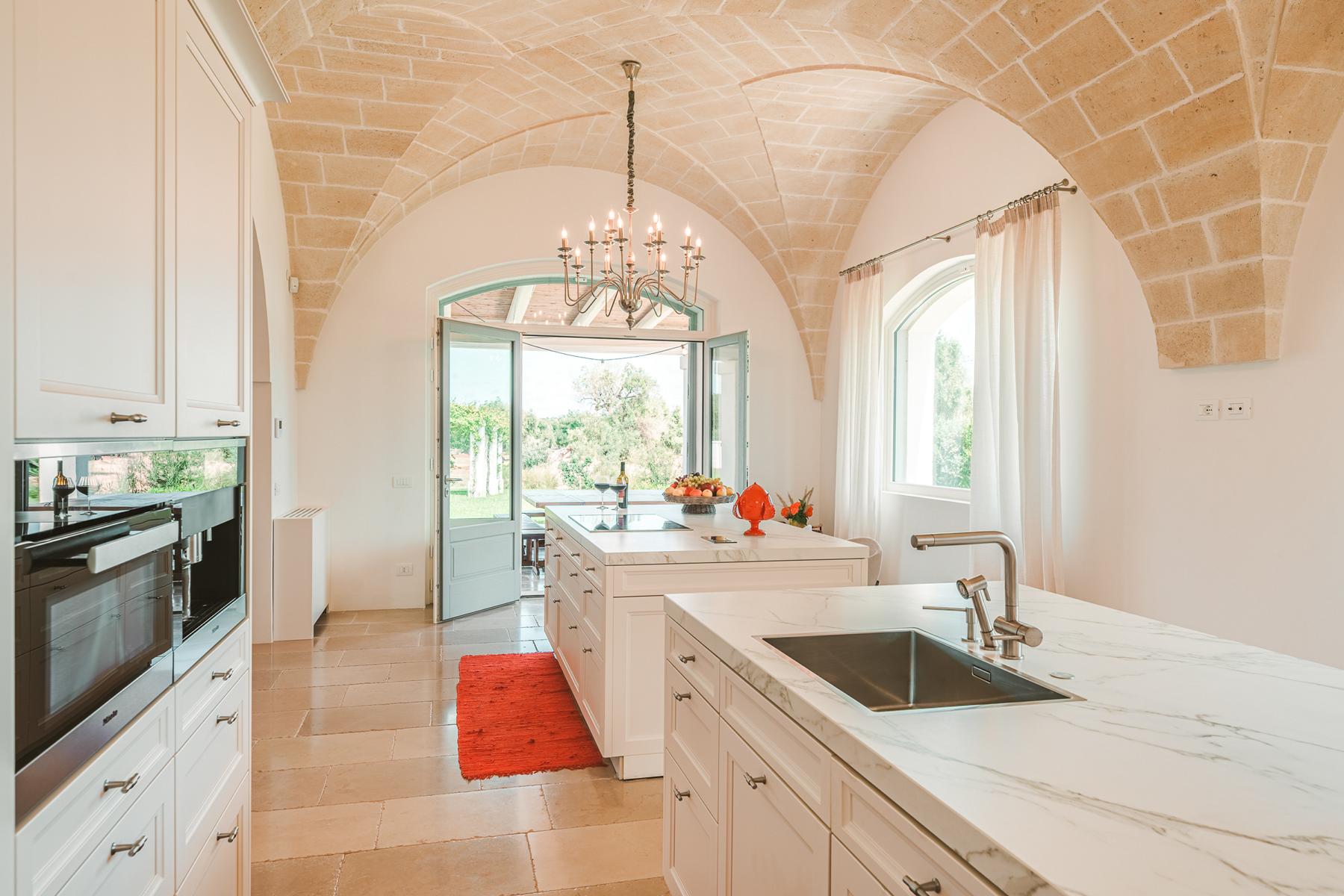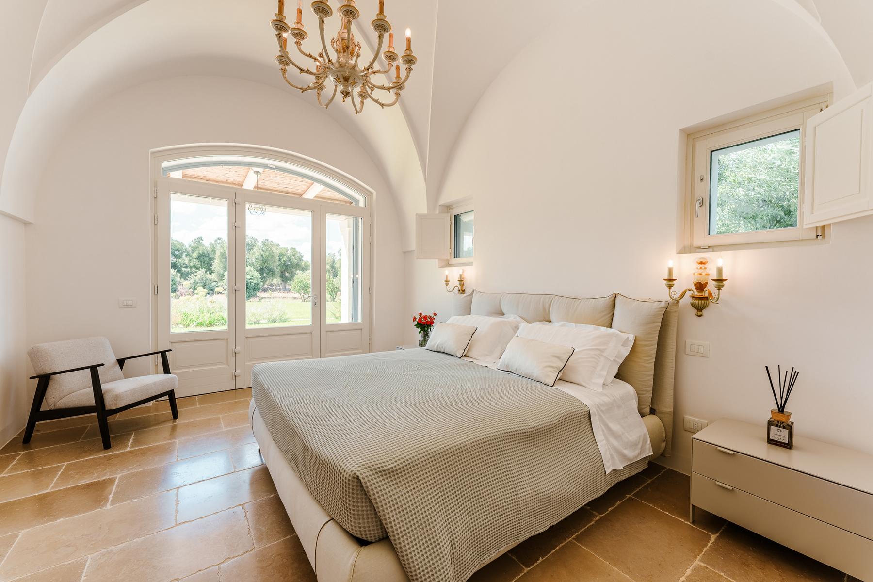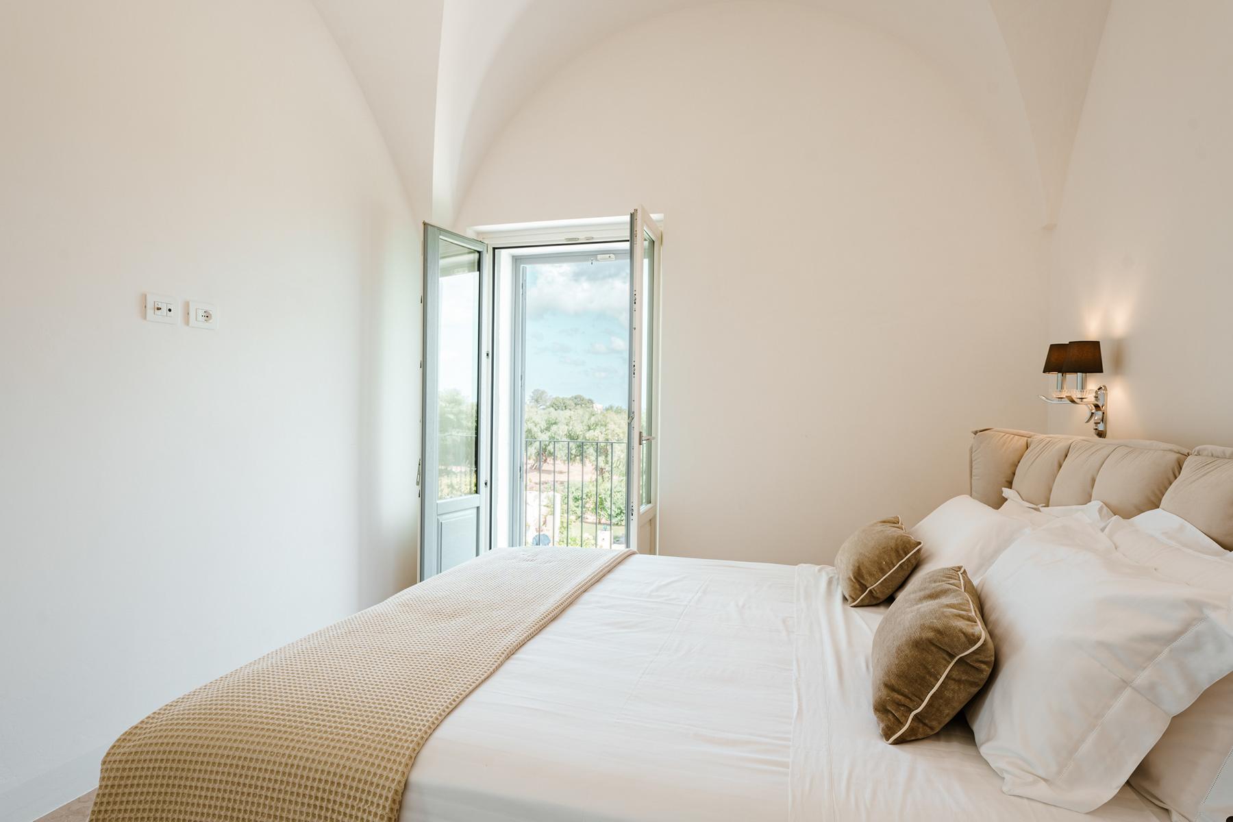 Zwischen jahrhundertealten Olivenhainen, chic, glamourös und von zeitlosem Charme. Ruhe und ein Blick auf das Meer in dieser prächtigen Villa voller Zauber in Apulien.