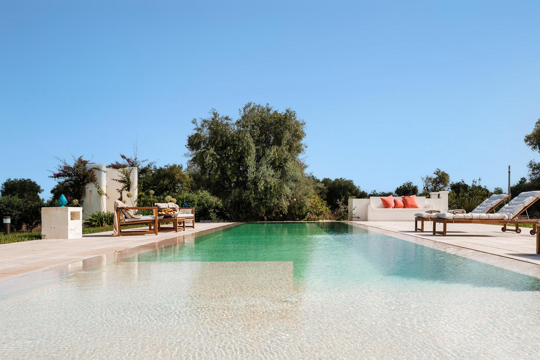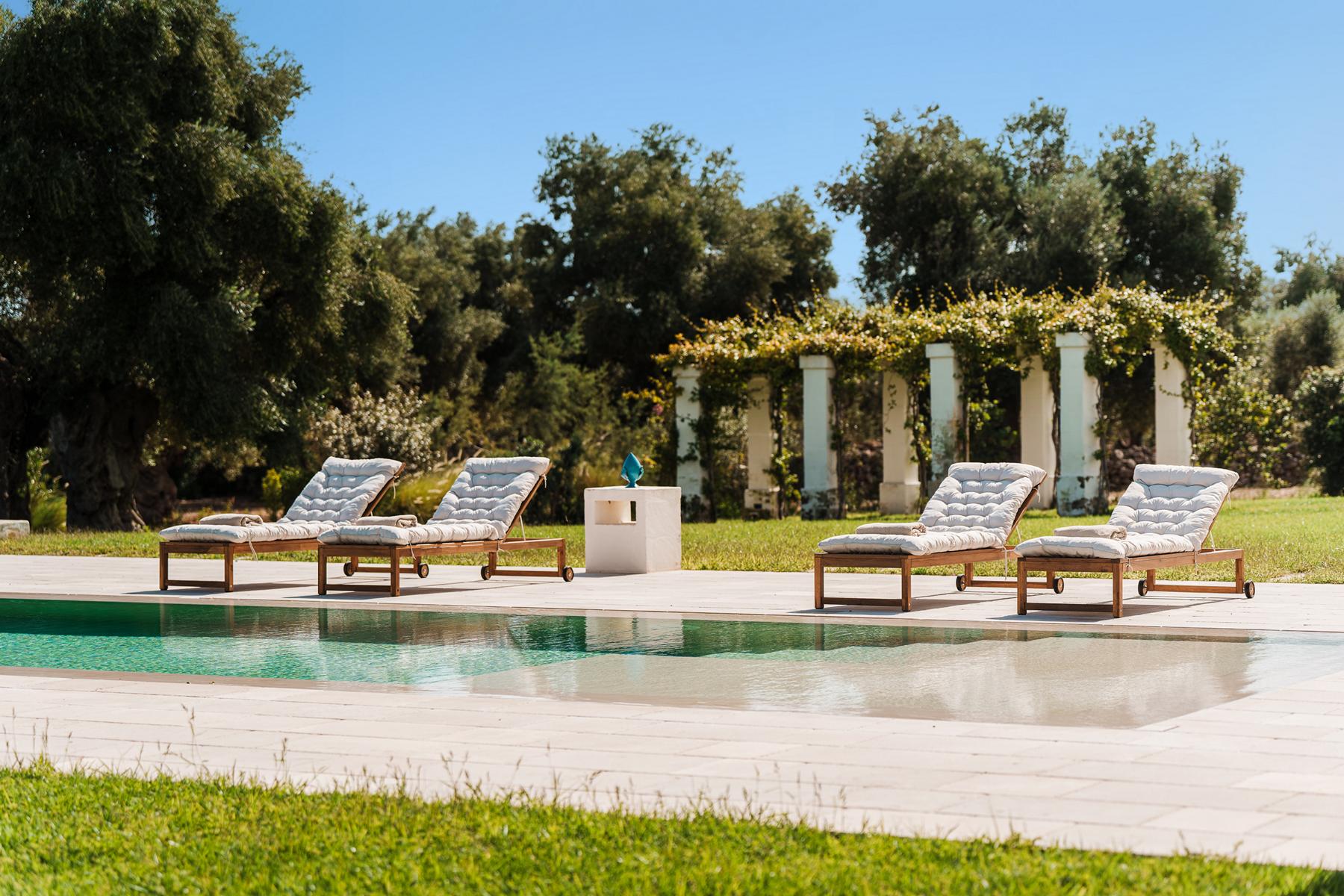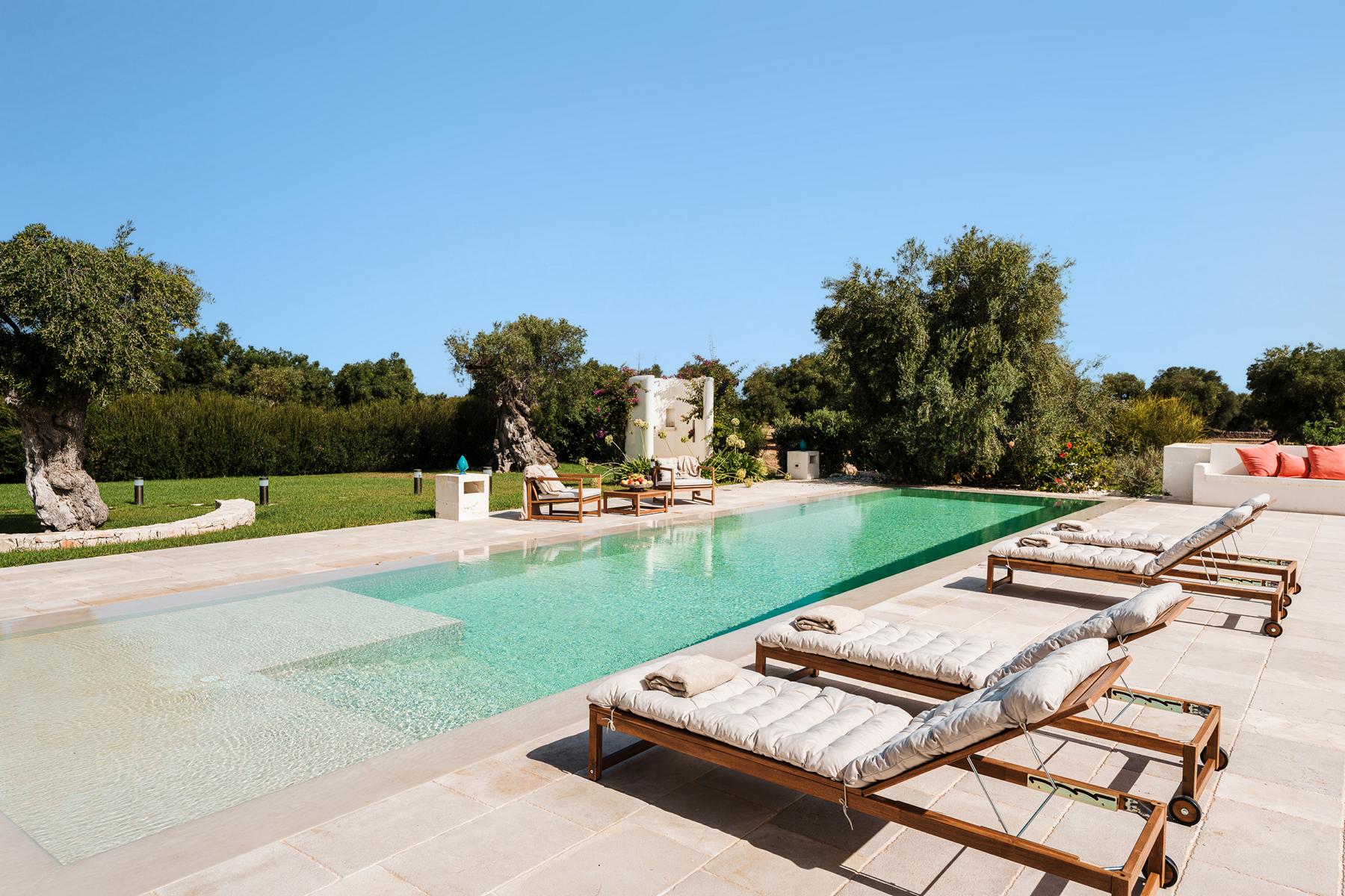 Eine Reise in jahrhundertealte Olivenhaine, eine Alleinlage und in Nähe der prestigeträchtigsten Küstenabschnitte des wunderschönen Apuliens liegt. Es duftet nach mediterranen Kräutern und inmitten dieser Naturoase ein großer Infinitypool.